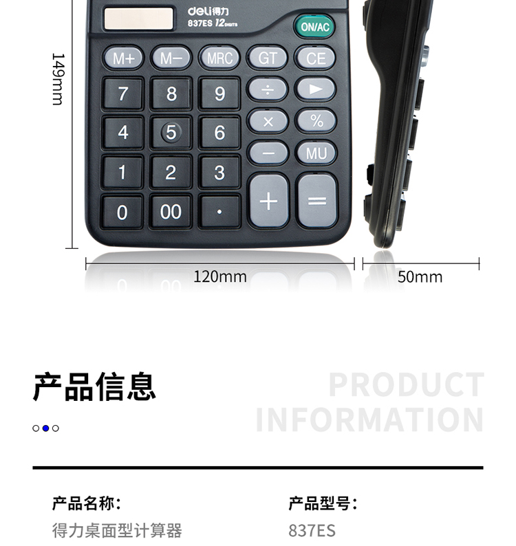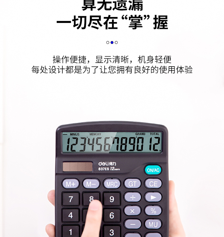 得力(deli)双电源桌面办公计算器12位大屏幕桌面计算机办