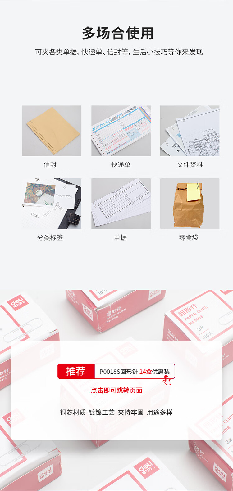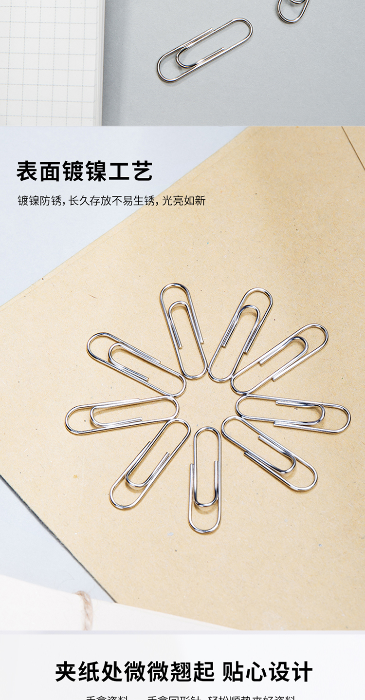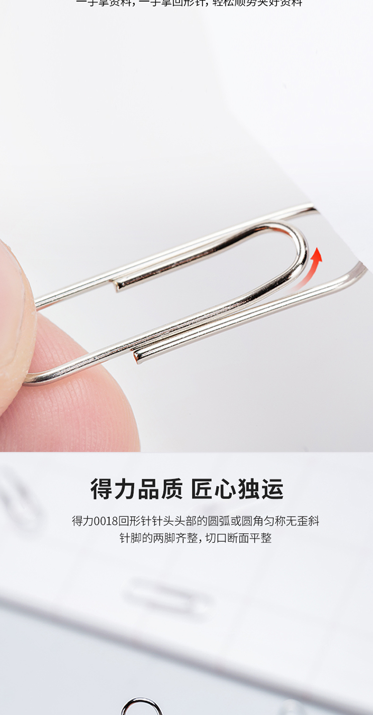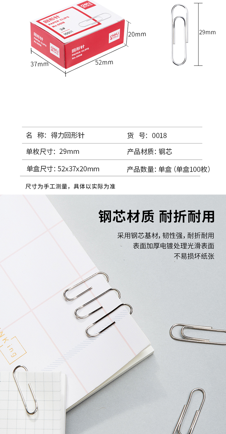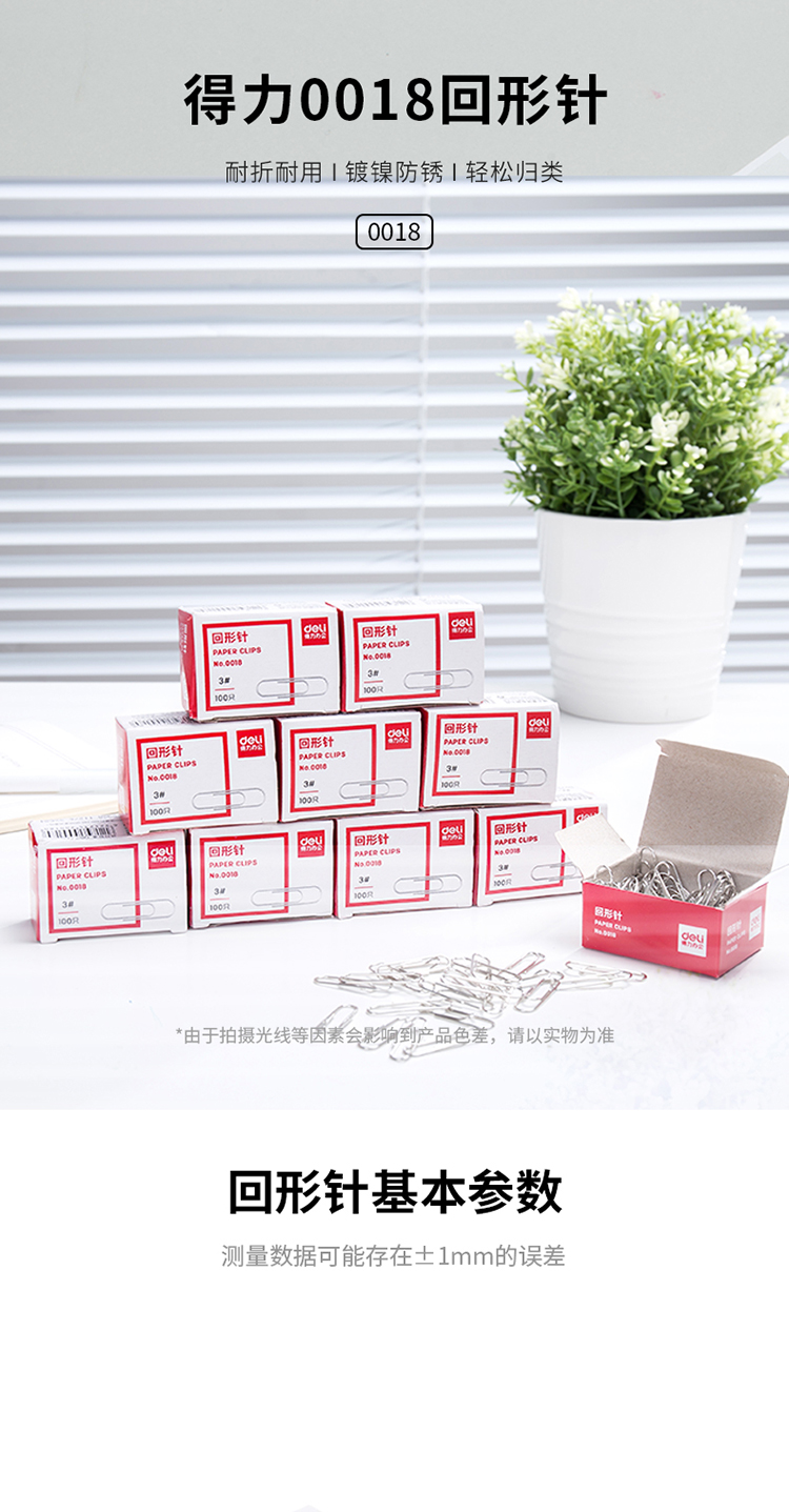 得力(deli)3#金属回形针镀镍防锈曲别针100枚/盒10
