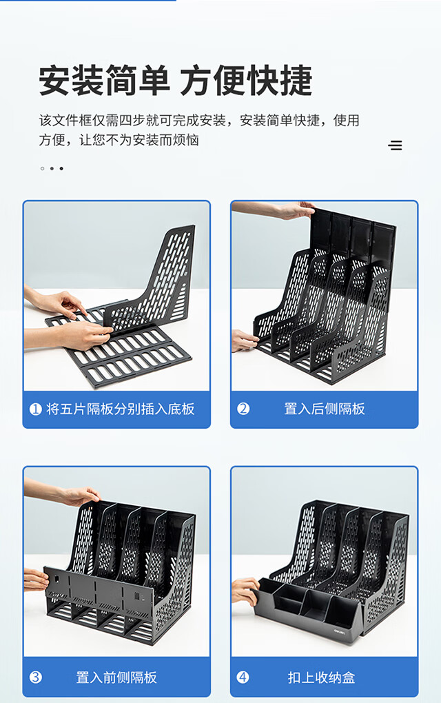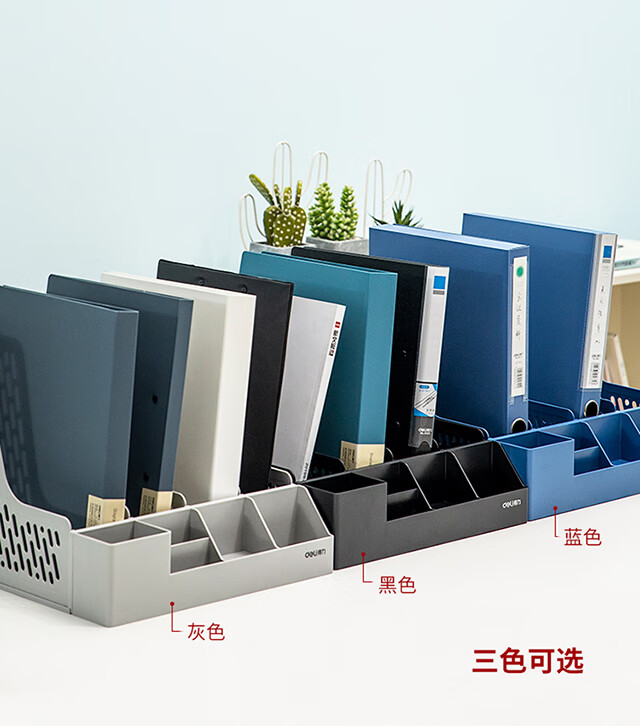 得力(deli)4联带笔筒收纳桌面文件框书立办公室桌面多层资