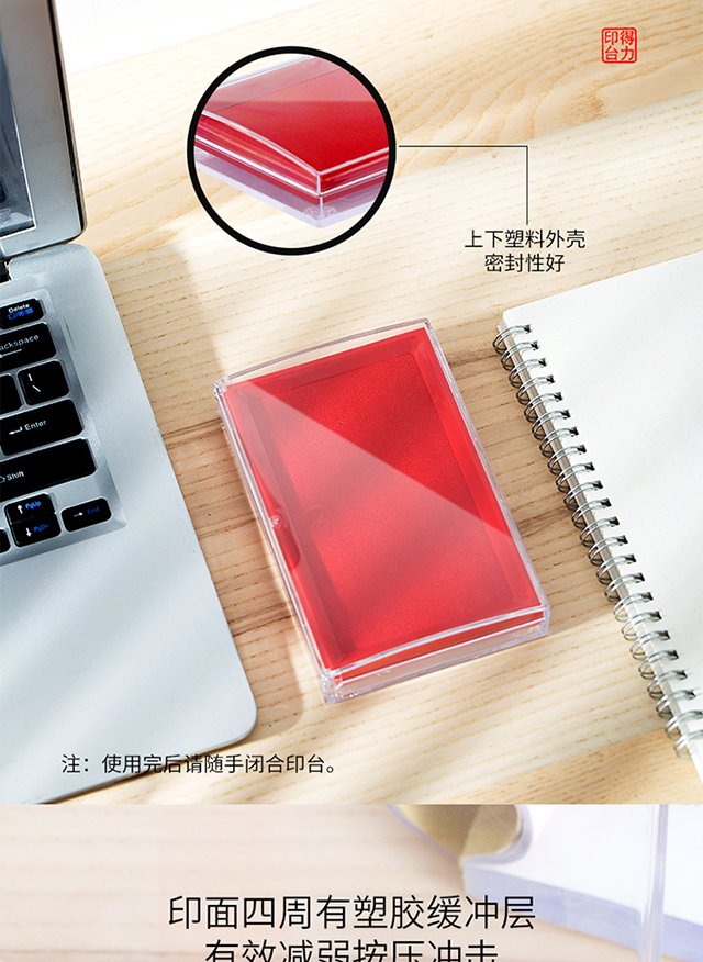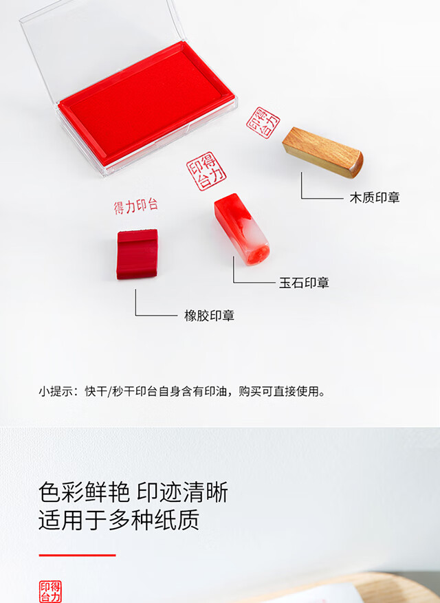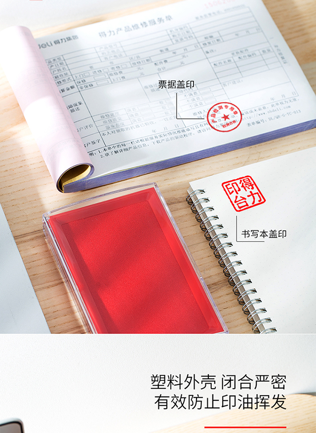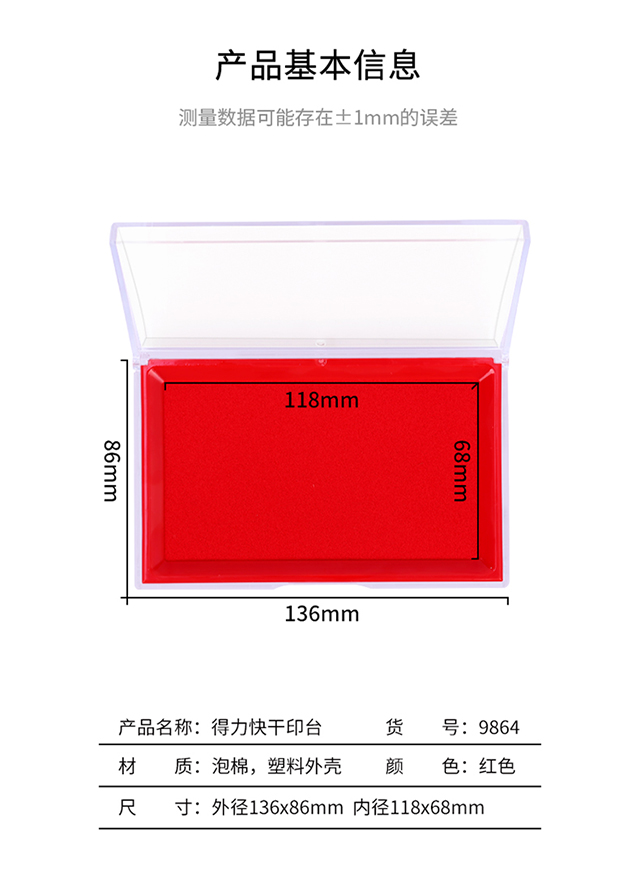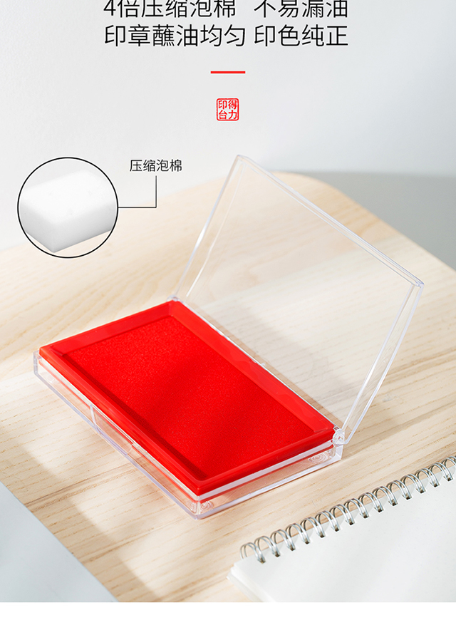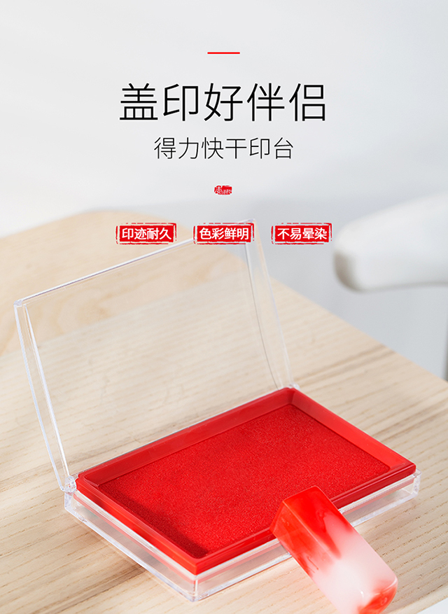 得力(deli)137*88mm透明外壳方形快干印台印泥办公