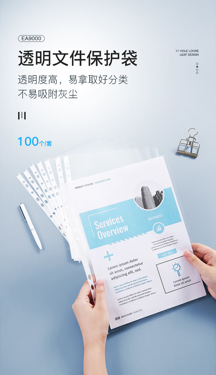 齐心(Comix)100只装11孔文件袋A4十一孔袋透明资料