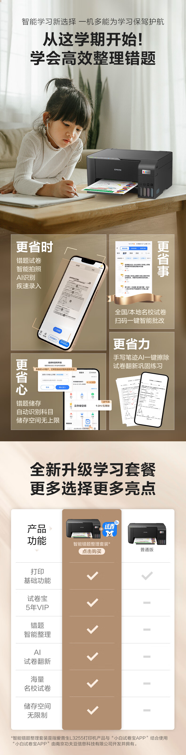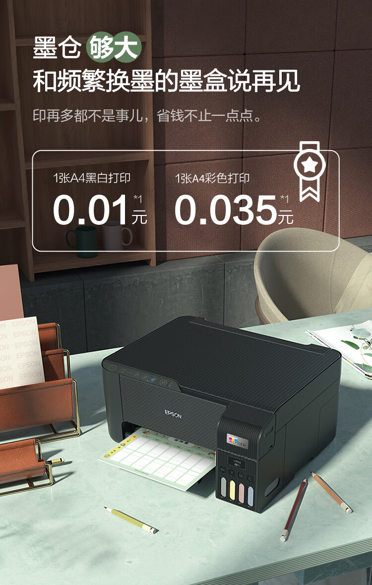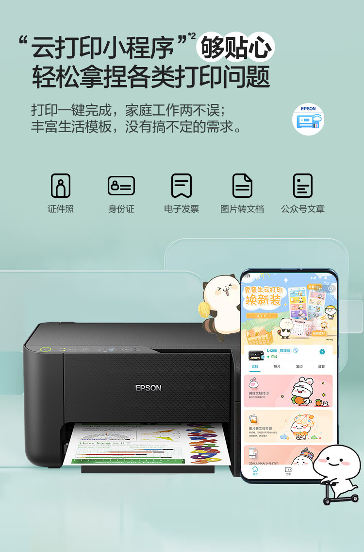 爱普生(EPSON)墨仓式L3255彩色打印机微信打印/无线