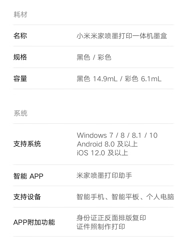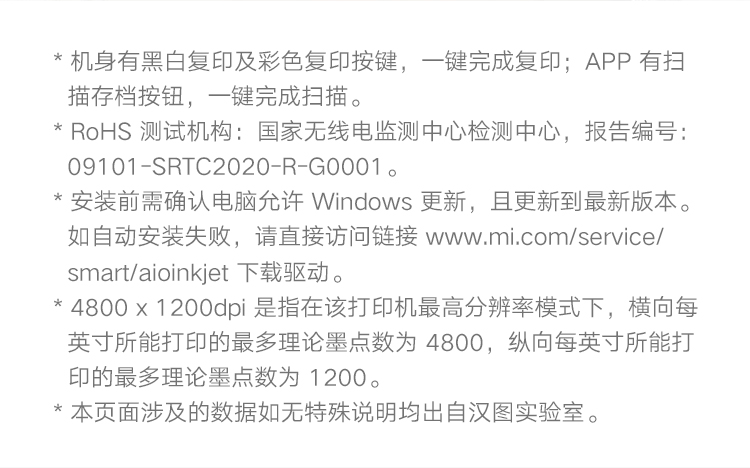 小米(MI)米家喷墨打印一体机打印/复印/扫描/照片彩色打印