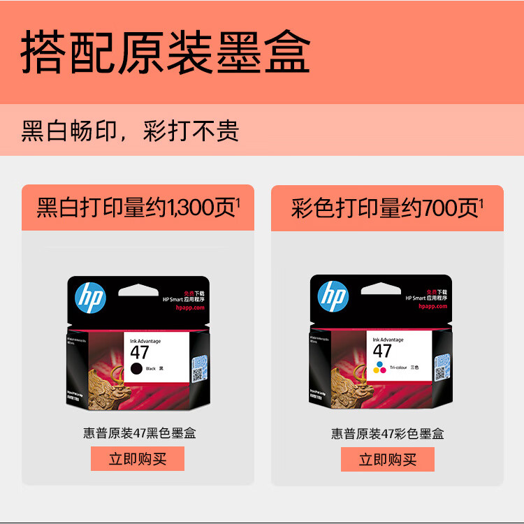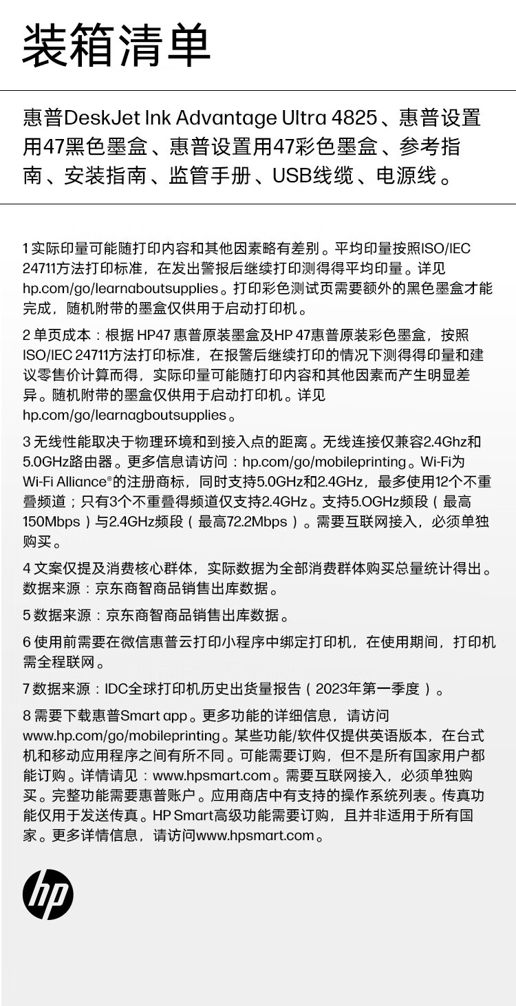 惠普(HP)DJ4825彩色无线喷墨打印机家用大印量低成本照
