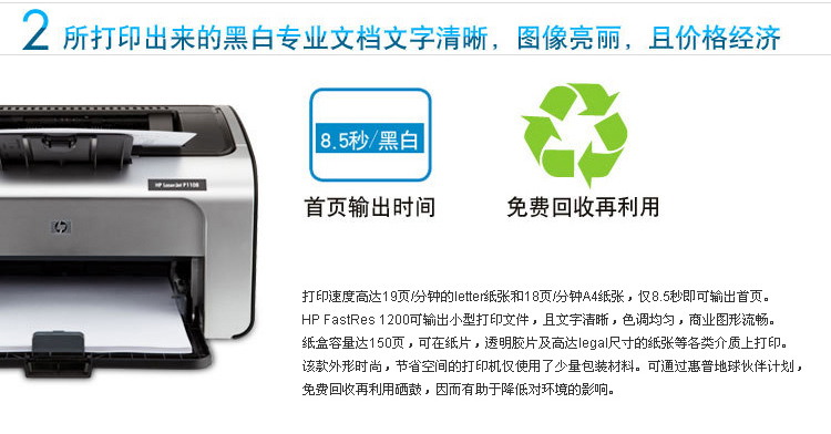 惠普(HP)P1108黑白激光打印机A4打印小型商用打印升级