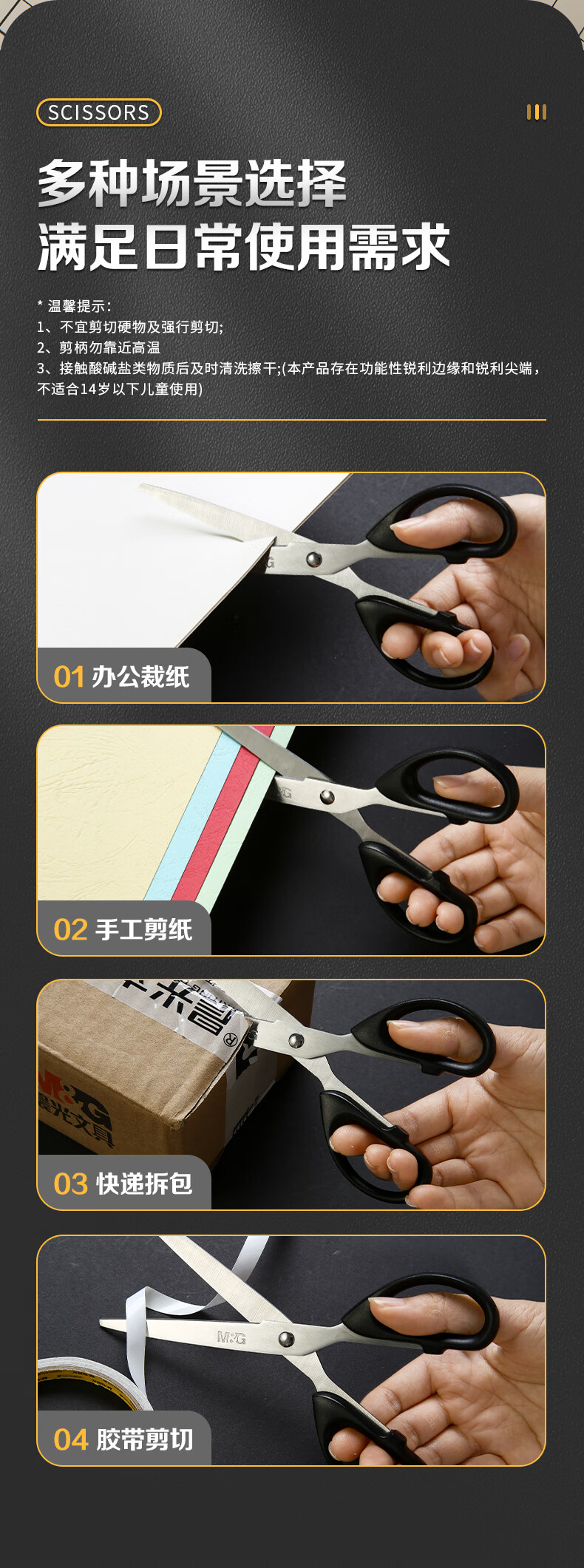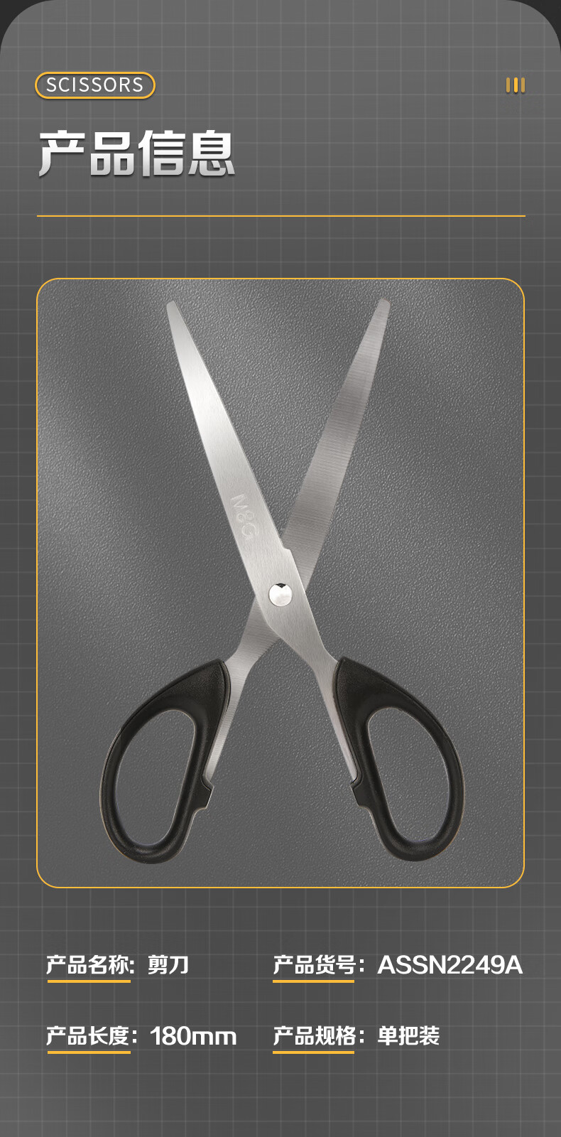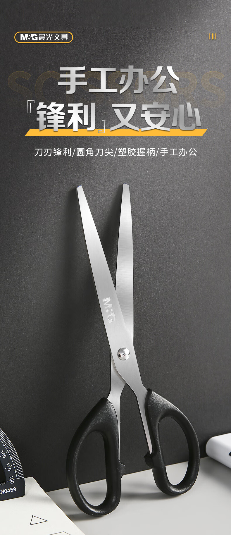 晨光文具180mm办公家用生活剪刀中号手工剪纸刀办公用品黑色